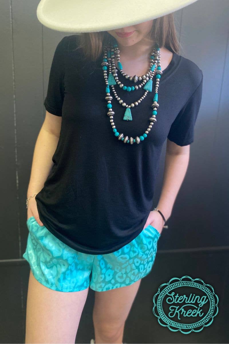 Feel fierce and fabulous in our Color Me Turq Shorts! Made of silky material, they feature a turquoise cheetah pattern to give you purrrfectly chic style. With POCKETS and a stretchy waistband, you'll be prepared to tackle anything the day throws your way. Your wildest wardrobe wishes await!