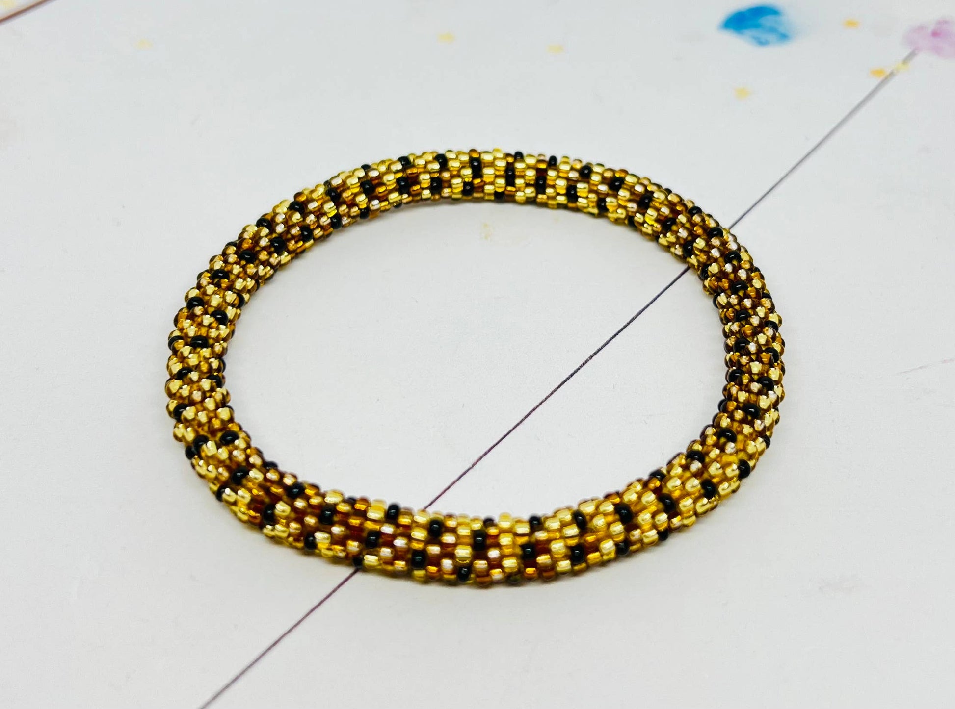 Brown, Gold and Black Beads. Leopard pattern Nepal bracelet.